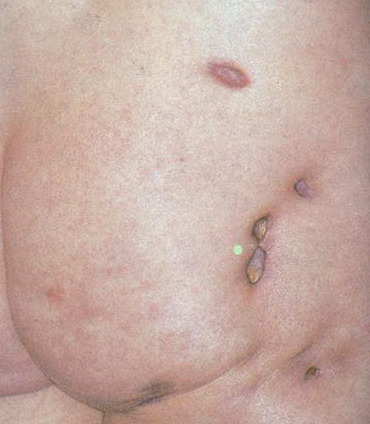 ·         Erythematous nodules at the face, shoulders, upper arms, and buttocks
