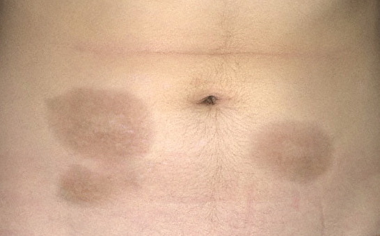 Atrophoderma of Pasini and Pierini is present in many patients with LS and presents with oval blue to dark brown hyperpigmented atrophic and slightly depressed areas. There is generally no induration or violaceous border in these lesions, in contrast to plaque-type morphea. The borders of the atrophoderma lesions have a “cliff-drop” appearance . Some consider atrophoderma to be an aborted, superficial form of LS .