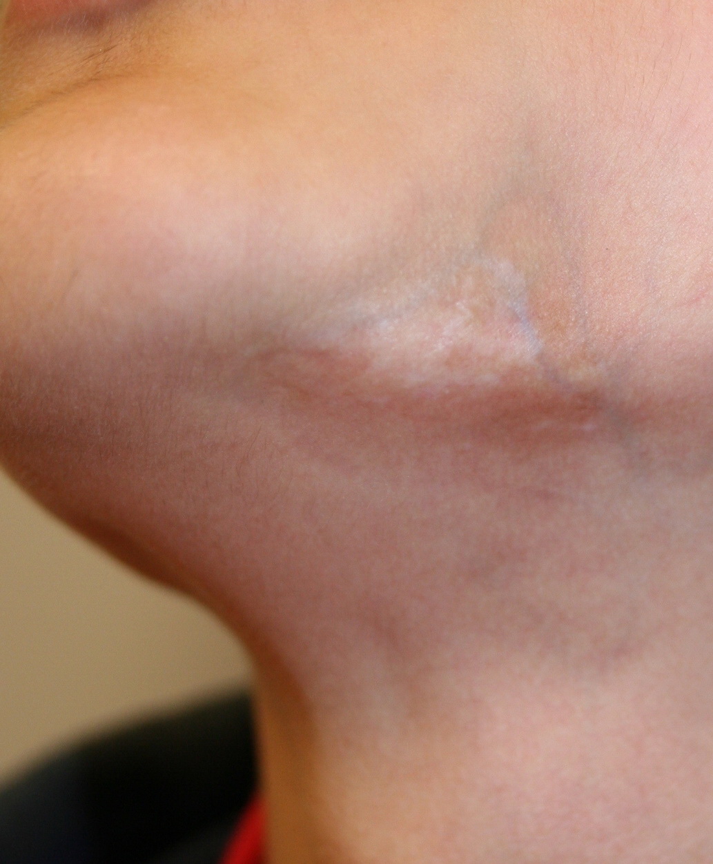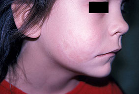 Typically, LS patients have no signs beyond the cutaneous lesions. Initially, before the development of LS, patients may present with arthralgia and, occasionally, frank arthritis. These findings tend to resolve with progression of the cutaneous lesions, but may cause clinicians to consider systemic rheumatologic conditions. Other uncommon findings include fever, regional lymphadenopathy, migraines, abdominal pain, tinnitus, neuralgias, and spina bifida.2,4 En coup de sabre has been associated with neurologic abnormalities, including seizures, uveitis, and inflammatory lesions of cortical and subcortical regions of the brain. However, there is no recognized internal organ involvement in LS.