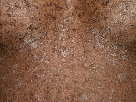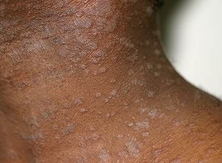 Many drugs have been reported to cause PR-like rashes. Thus, it is always important to obtain a drug history to investigate this possibility. These include arsenic, barbiturates, bismuth, captopril, clonidine, gold, interferon-α, isotretinoin, ketotifen, labetalol, organic mercurials, methoxypromazine, metronidazole, omeprazole, D-penicillamine, salvarsan, sulfasalazine, terbinafine, and tripelene amine hydrochloride. Of note, a more recent addition to this list is imatinib,21 a drug used in the treatment of chronic myeloid leukemia. Drug-induced PR may be of the classic type, but it often shows atypical features, a protracted course, large lesions, subsequent marked hyperpigmentation, and transformation to lichenoid dermatitis.