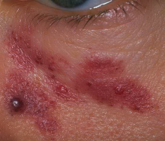 Port wine stain = الاصطباغ الخمري أوبقعة النبيذ