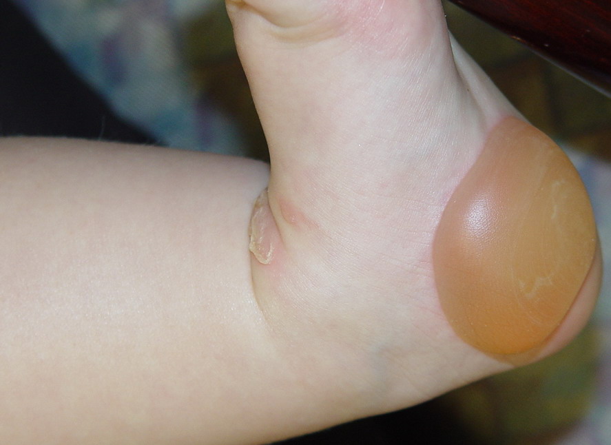 - Pseudosyndactyly (mitten-hand deformity): This is a frequent complication in patients with recessively inherited epidermolysis bullosa but is rare in other subtypes. In this disorder, skin grows around the digits because of repeated blistering and dystrophic healing. Over time, the digits are encased in a mitten of skin. Therapeutic surgical approaches are available, but the rate of recurrence is high (see Surgical Care).