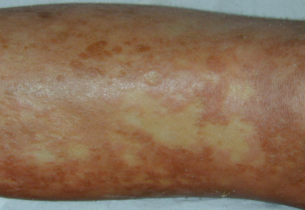 - In chronic cases, pigmentary disturbances can occur (especially in darker-skinned races); patchy or widespread loss of pigment (resembling vitiligo) has been reported.