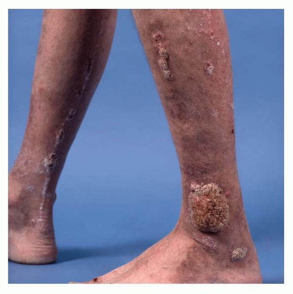 Rarely, patients with epidermal nevi have offspring with epidermolytic hyperkeratosis (EHK), a condition resulting from a mutation in keratin 10 (K10). Paller et al. investigated three families with this occurrence. The analysis of skin samples of parents and offspring with EHK demonstrated a parental mutation in one of the two K10 alleles within the epidermal nevus; non-lesional skin showed no mutation. Offspring showed the same K10 mutation as their parents.35 The presence of two genetically distinct cell lines in the parents, also known as mosaicism, is a result of postzygotic mutation during embryogenesis. If histopathologic evaluation of an epidermal nevus reveals findings consistent with EHK, the patient is at risk of having a child with EHK. Prenatal counseling may be very important for these patients.