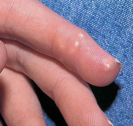 Intercritical gout describes the interval that occurs between attacks of gout, an interval of between 6 months to 2 years. As attacks continue, they tend to be polyarticular, more severe, and of longer duration. Chronic tophaceous gout describes gout where patients rarely have asymptomatic periods. Urate crystals may be found in the soft tissues, cartilage, and tendons They have been reported in a variety of unusual places as well, including the nasal dorsum. They may be confused with rheumatoid nodules, and aspiration or biopsy may prove useful.