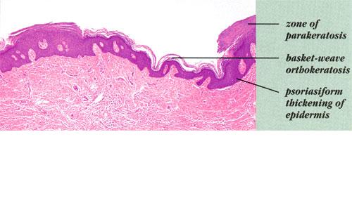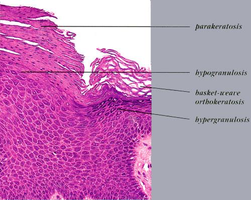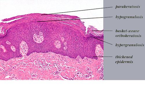 Occasionally in cases of the localized type, but quite frequently in cases of the systematized type, particularly those with a widespread distribution, one observes the rather striking histologic picture referred to either as epidermolytic hyperkeratosis or as granular degeneration of the epidermis . It is the same process that was first recognized in all cases of bullous congenital ichthyosiform erythroderma, a disorder that is often referred to as epidermolytic hyperkeratosis . It has since been
