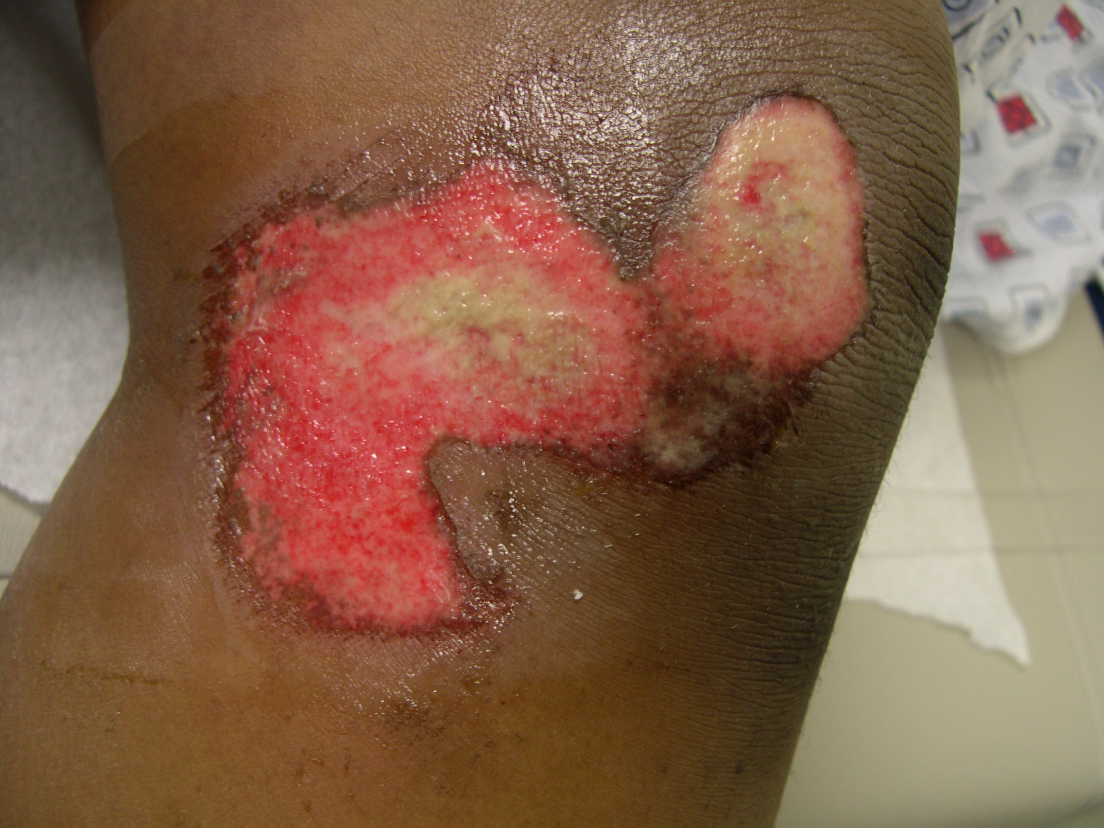 an abrasion is a wound caused by superficial damage to the skin, no deeper than the epidermis. It is less severe than a laceration, and bleeding, if present, is minimal. Mild abrasions, also known as grazes or scrapes, do not scar or bleed, but deep abrasions may lead to the formation of scar tissue. A more traumatic abrasion that removes all layers of skin is called an avulsion
