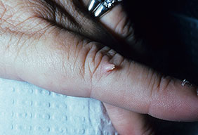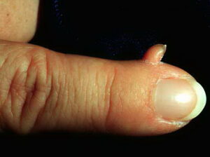 In 1968, Bart et aldescribed 10 cases of an uncommon acquired growth that was located on the fingers. Although it clinically resembled a cutaneous horn or rudimentary supernumerary digit, it had distinct histopathological findings. The authors named this growth acquired digital fibrokeratoma (ADFK). Subsequently, Pinkusreported 28 more cases; however, because the lesions Pinkus described also occurred on the proximal hand, toes, soles, and one in the prepatellar region, he suggested the entity might be more appropriately called acquired acral fibrokeratoma.