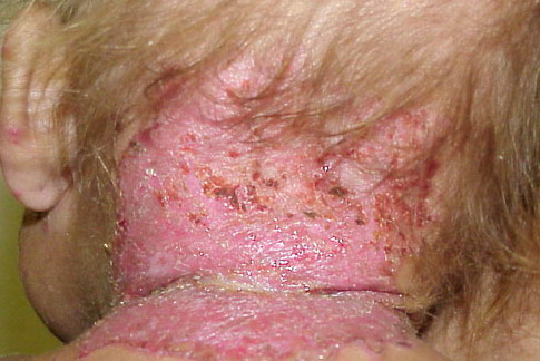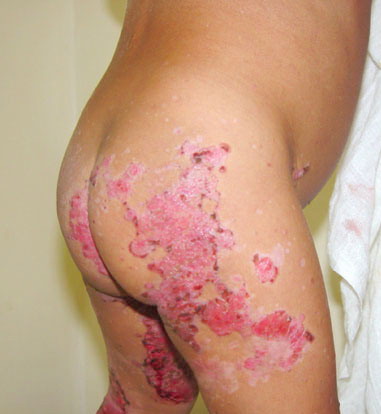 mentation. Cutaneous manifestations, when present, are usually less striking and present predominantly as a psoriasiform dermatitis involving the hands and feet and, occasionally, the knees.