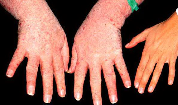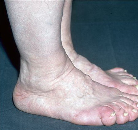 • Enlargement of hands and feet with a doughy texture