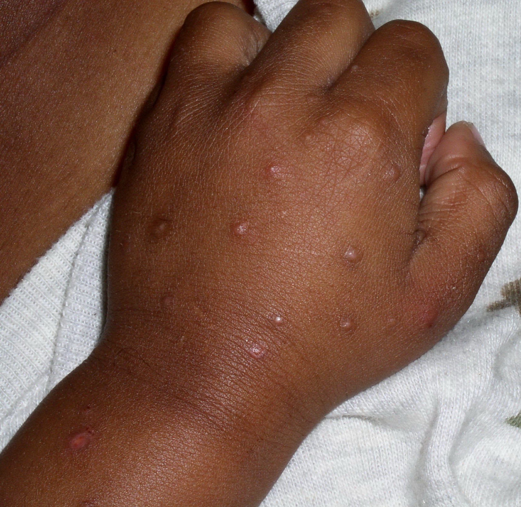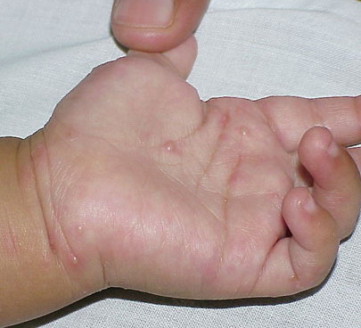 The cause of infantile acropustulosis is unknown. Scabies as a preceding or concomitant infestation is well documented in some cases. Many children are undoubtedly misdiagnosed as having scabies and treated with lindane or permethrin without any confirmatory scrapings. No other infectious agent has been documented.