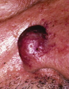 Due to its slow growth, ACC has a relatively indolent but relentless course. Unlike most carcinomas, most patients with ACC survive for 5 years, only to have tumors recur and progress. In a recent study of a cohort of 160 ACC patients, disease specific survival was 89% at 5 years but only 40% at 15 years. Another unusual feature of ACC is that, unlike most carcinomas, it seldom metastasizes to regional lymph nodes. Distant metastasis is the most common presentation of treatment failure. The lung is by far the most common site of metastasis, with the liver being the second most common site. Bone metastases usually indicate a fulminant clinical course. Poor prognostic signs at the time of initial surgery are a solid growth pattern, perineural invasion of major nerves and/or positive margins after histopathologic examination.