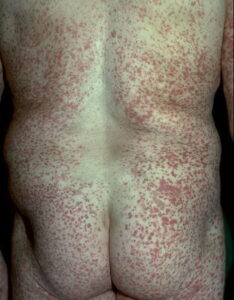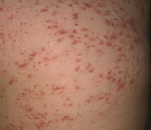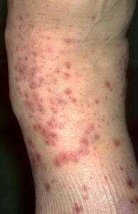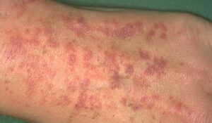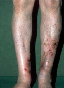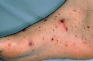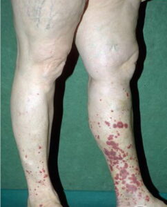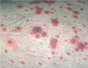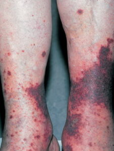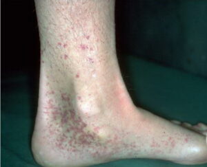 The main symptoms of Allergic vasculitis is nodular erythema occurred in lower limbs, and tenderness can also be associated with purpura, purpuric papules, wind groups, blister dome lesions. Pathological manifestations of the skin vessel walls have inflammatory cell infiltration, mainly polynuclear leukocytes and fibrin deposition, perivascular infiltration of many leukocytes, nuclear dust and red blood cells associated with exudation.