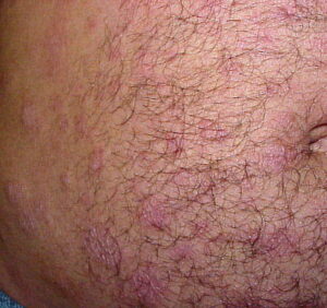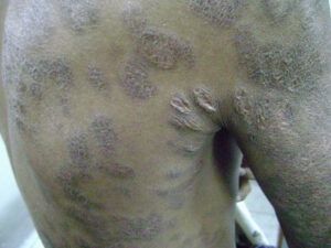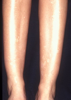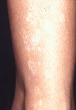 The most common sites for these asymptomatic lesions are the chest, back, neck, and upper extremities. They usually develop in young adults, and new lesions often continue to form for many years as the older lesions fail to resolve.