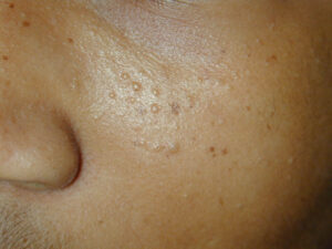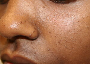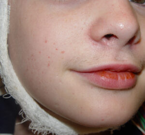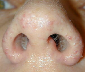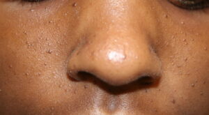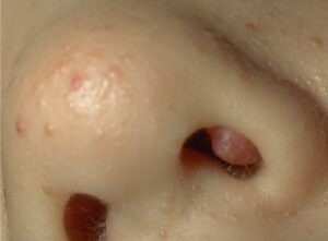The most common symptoms of angiofibroma are nasal congestion, headache, nosebleeds, facial swelling, difficulty breathing through the nose and nasal-sounding speech. Children with angiofibromas might also develop a condition called otorrhea, in which fluid drains from one or both ears. Diagnosis of these nasopharyngeal tumors is generally made on the basis of medical imaging tests such as MRIs, CT scans and X-rays. The child might also undergo an arteriogram, a procedure that allows the doctor to view the blood supply which feeds the tumor.