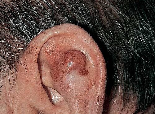 Atypical fibroxanthoma =صفروم ليفي غير نموذجي Epidemiology Atypical fibroxanthoma (AFX) is a relatively common rapidly growing neoplasm of intermediate malignant potential. It occurs mainly on sun-exposed skin (face, neck, and hands) of elderly individuals. The male-to-female ratio is essentially equal. AFX has been reported in the second to tenth decade, with a mean age of approximately 69 […]