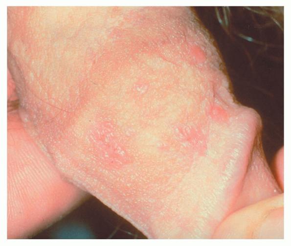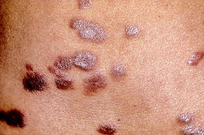 These patients present with numerous thin, pink, flat papules and plaques that resemble verruca plana. They also may have widespread scaly, erythematous, or hypopigmented macules and flat papules that appear similar to tinea versicolor