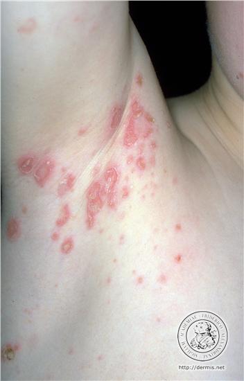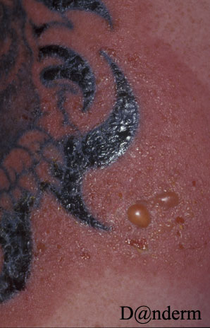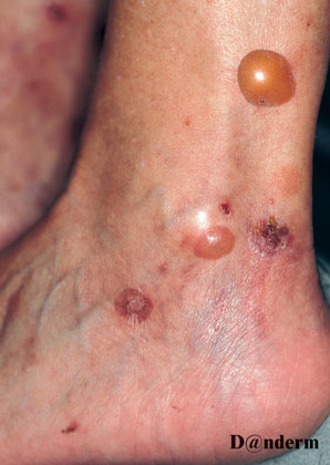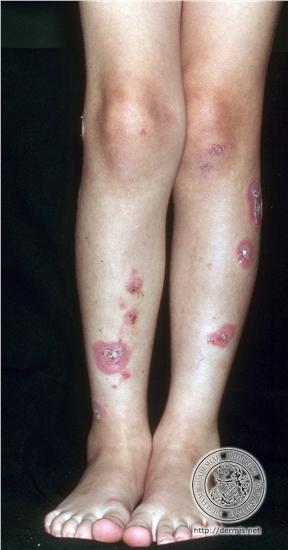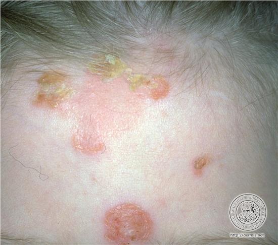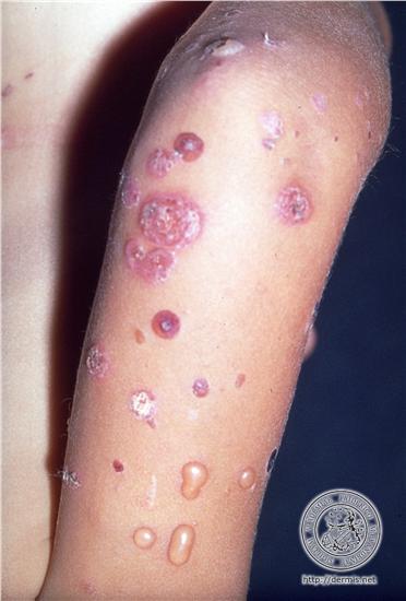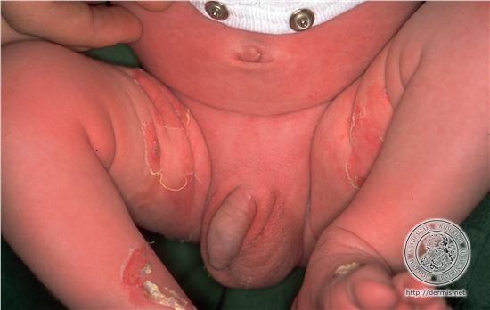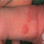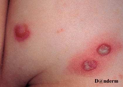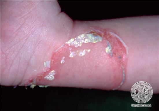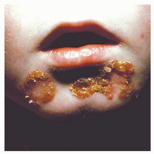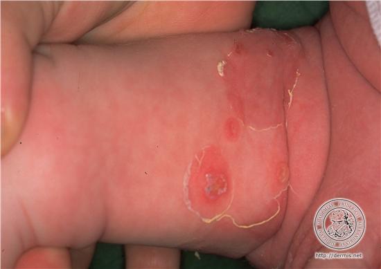 Bullous impetigo occurs more commonly in the newborn and in older infants, and is characterized by the rapid progression of vesicles to flaccid bullae . Decades ago, extensive bullous impetigo (archaic term: pemphigus neonatorum or Ritter disease) occurred in epidemics within neonatal nurseries.