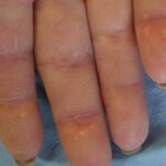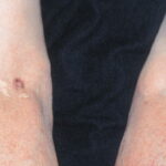 There is no standard treatment for dystrophic calcification. A diet low in calcium and phosphate along with aluminum hydroxide has been reported to arrest or facilitate regression of the calcified nodules.23 Disodium etidronate has also been used with some success.24 Several series report long-term treatment with diltiazem improves the calcinosis in some patients.25,26 Other reported treatments include warfarin, colchicine, probenecid, and bisphosponates.16,27 Occasionally, calcium deposits must be removed surgically to clear sinus tracts, ulcers, or chronic infections.
