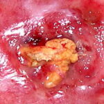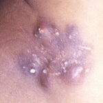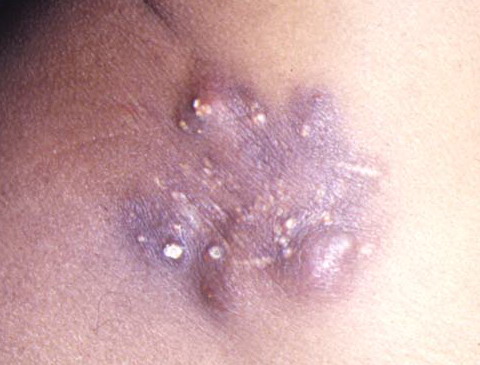 Infectious agents may produce enough cutaneous damage to cause dystrophic calcification. Parasitic infections that may result in calcinosis cutis include onchocerciasis (Onchocerca volvulus) and cysticercosis (Taenia solium).52,53 Calcinosis cutis has also been reported as a complication of intrauterine herpes simplex infection.54