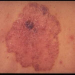 • Typically, some areas of these tumors do not retain pigment; pearly, raised borders with telangiectases that are typical of a nodular basal cell carcinoma can be observed. This aids clinically in differentiating this tumor from a melanoma.