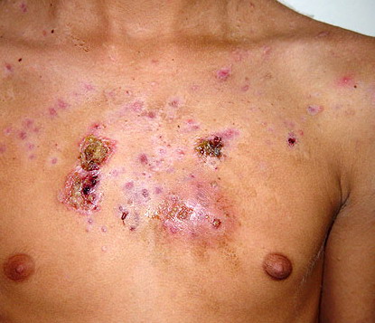 Acne conglobata=العد المكبب Acne Conglobata Acne conglobata, a severe form of nodular acne is most common in teenage males but can occur in either sex and into adulthood. Acne conglobata (conglobate means shaped in a rounded mass or ball) is a mixture of comedones, papules, pustules, nodules, abscesses, and scars. It can be on the back, buttocks, chest, and, to […]