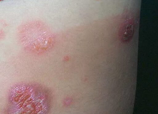 Read MoreBullous impetigo=القوباء الفقاعية BULLOUS IMPETIGO . Three types of skin eruptions can be produced by phage group II S. aureus, particularly strains 77 and 55: (1) bullous impetigo, (2) exfoliative disease (SSSS), and (3) nonstreptococcal scarlatiniform eruption (staphylococcal scarlet fever). All three represent varying cutaneous responses to extracellular exfoliative toxins (“exfoliatin”) types A and B […]
