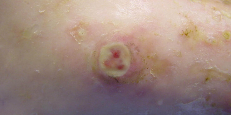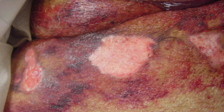 Read MoreBullosis diabeticorum= فقاعات مرافقة للداء السكري Bullosis diabeticorum Bullous disease of diabetes (bullosis diabeticorum) is a distinct, spontaneous, noninflammatory, blistering condition of acral skin unique to patients with diabetes mellitus. Kramer first reported bullouslike lesions in diabetic patients in 19301 ; Rocca and Pereyra first characterized this as a phlyctenar (appearing like a burn-induced blister) […]