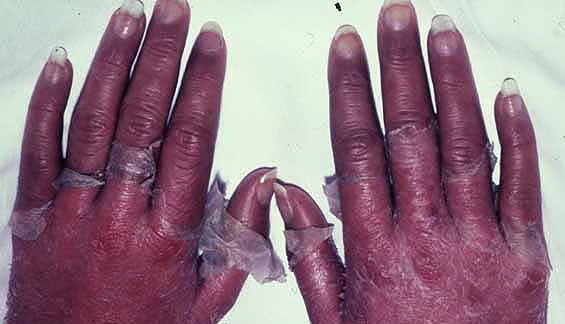 Erythropoietic protoporphyria = البروتو بورفيريا المكونة للدم Erythropoietic protoporphyria Erythropoietic protoporphyria is a genetic disorder most often arising from impaired activity of ferrochelatase, the ultimate enzyme of heme biosynthesis.1,2 The resultant accumulated excess of its substrate, protoporphyrin, causes 2 principal manifestations: (1) a distinctive acute cutaneous photosensitivity typically appearing in childhood and (2) hepatobiliary disease.1,3,4,5 […]