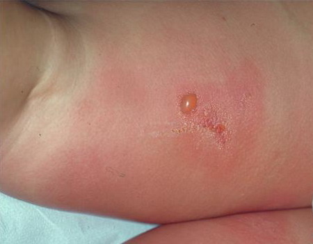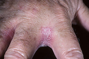 Read MoreErosion interdigitalis blastomycetica = تسحج بين الاصابع الفطاري Erosion interdigitalis blastomycetica Erosio interdigitalis blastomycetica is a skin condition caused by a Candida albicans infection, characterized by an oval-shaped area of macerated white skin on the web between and extending onto the sides of the fingers