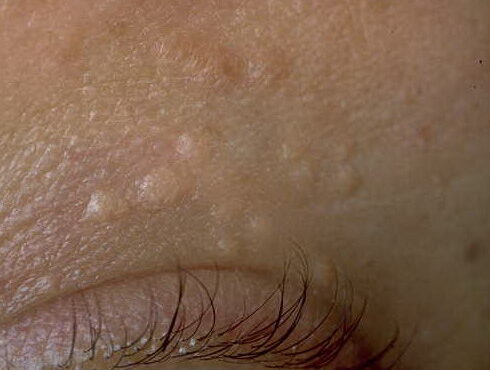 Read MoreEruptive syringomas = الاسطوانوم الاندفاعي Eruptive syringomas Syringoma is a benign adnexal neoplasm formed by well-differentiated ductal elements. The name syringoma is derived from the Greek word syrinx, which means pipe or tube. Based on Friedman and Butler’s classification scheme, 4 variants of syringoma are recognized: (1) a localized form, (2) a form associated with Down […]