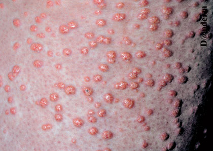Read MoreEruptive lichen planus = الحزاز المنبسط الاندفاعي Lichen planus Lichen planus (LP) is a pruritic, papular eruption characterized by its violaceous color; polygonal shape; and, sometimes, fine scale. Lichen planus is most commonly found on the flexor surfaces of the upper extremities, on the genitalia, and on the mucous membranes. Lichen planus is most likely […]