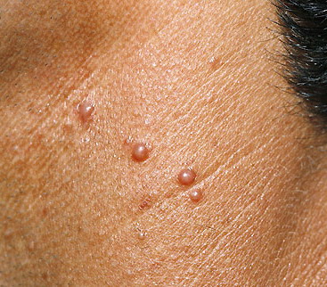 Hidradenoma = الغدوم عرقي HIDRADENOMA Epidemiology. Hidradenoma (eccrine acrospiroma) presents mainly in adults, primarily in women. Clinical Findings. Hidradenoma presents as a slowly growing, firm, solitary, smooth-surfaced, usually bluish-red, movable dermal and/or subcutaneous papule or nodule. Lesions are located mostly on the scalp, face, trunk, and abdomen, and, occasionally, on the extremities . Unusual […]