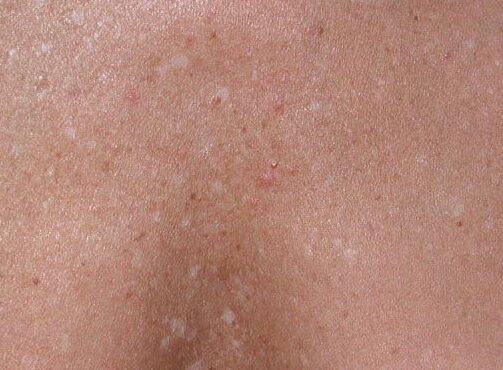 Read MoreHypomelanosis idiopathic guttate = نقص التصبغ النقطي مجهول السبب IDIOPATHIC GUTTATE HYPOMELANSOSIS Idiopathic guttate hypomelanosis (IGH) is an acquired leukoderma, characterized by discrete, round or oval porcelainwhite macules of approximately 2- to 5-mm diameter, which increase in number with aging . Any associated hairs often remain pigmented. Lesions are found in a photodistribution and tend to occur in chronically sun-damaged skin. […]