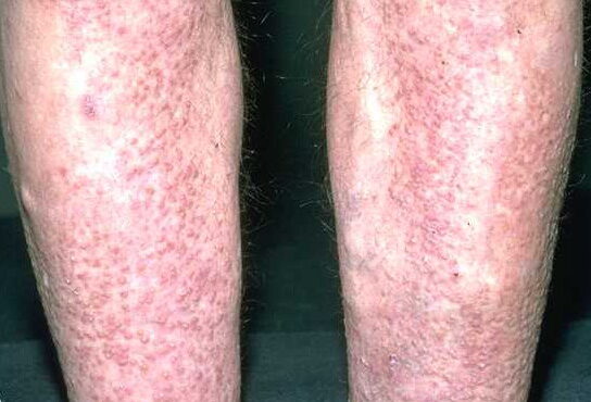 Read MoreLichen myxedematosus= الحزاز الوذمي المخاطي Lichen Myxedematosus Lichen myxedematosus, or papular mucinosis, is characterized by a more or less extensive eruption of asymptomatic, soft papules generally 2 to 3 mm in diameter, associated with a monoclonal gammopathy. Although densely grouped, they usually do not coalesce. The face and arms are the most commonly affected areas […]