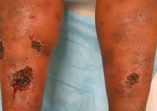 Read MorePolyarteritis nodosa = التهاب الشرايين العقد Cutaneous Polyarteritis Nodosa Cutaneous polyarteritis nodosa is a vasculitis involving the arteries and arterioles of the septa of the subcutaneous fat with little or no evidence of systemic disease.The lower legs are usually affected. Clinically, the lesions consist of bilateral, tender erythematous nodules, which may undergo ulceration, […]