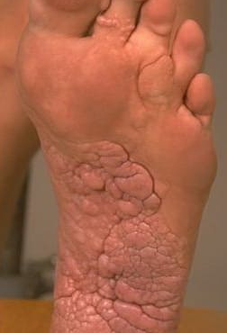 Proteus Syndrome This condition is characterized by various cutaneous and subcutaneous lesions, including vascular malformations, lipomas, hyperpigmentation, and several types of nevi. Partial gigantism with limb or digital overgrowth is pathognomonic, with an unusual body habitus and, often, cerebriform thickening of the soles of the feet. Because cutaneous lesions tend to appear over time, the diagnosis may […]