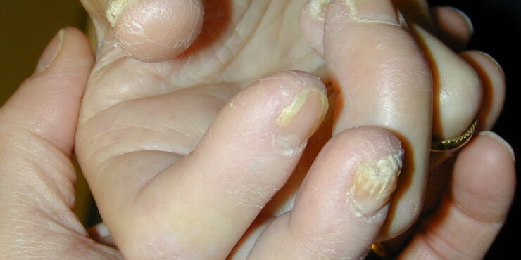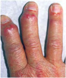 Read MoreReticulohistiocytosis multicentric = داء كثرة الناسجات الشبكي متعدد المراكز MULTICENTRIC RETICULOHISTIOCYTOSIS Clinical Findings CUTANEOUS LESIONS MRH is characterized by the association of a cutaneous and mucosal eruption with severe arthropathy and other visceral symptoms. The papulonodular lesions range in diameter from a few millimeters to 2 cm and are round, translucent, and yellowrose […]