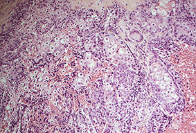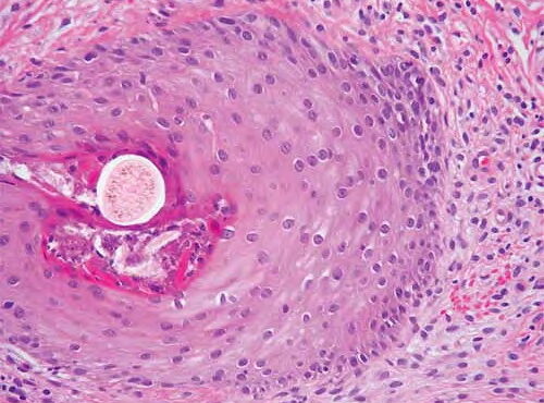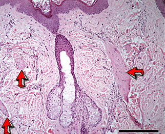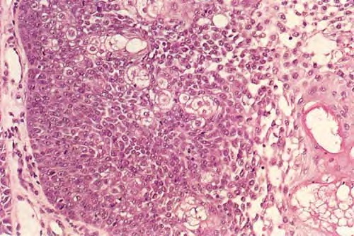 Read MoreSeborrheic keratosis, acanthotic type = التقران الدهني من النموذج الشواكي Seborrheic Keratosis Seborrheic keratoses are very common: sometimes single but often multiple. They occur mainly on the trunk and face but also on the extremities, excluding palms and soles. They usually do not appear before middle age, but are present in about 20% of the […]