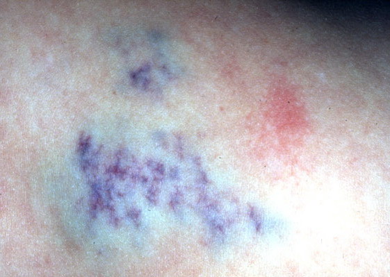 with large, radiating veins or with overlying telangiectasia and a halo of pallor . Central ulceration may be present. Most RICH involute spontaneously by age 14 months, often sooner, and usually leave residual atrophic inelastic skin in their wake.105