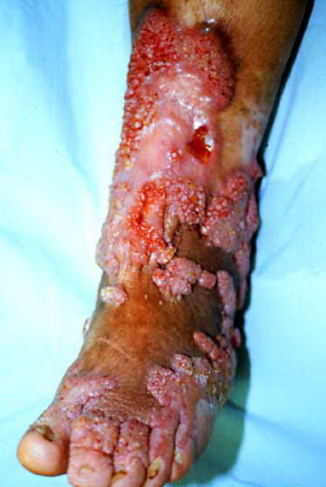 The disease must be differentiated from chronic tropical lymphedema with hyperplasia (mossy foot). Other chronic verrucous lesions, such as tuberculosis and blastomycosis, are often more extensive. The identification of organisms in the lesions of chromoblastomycosis is essential.