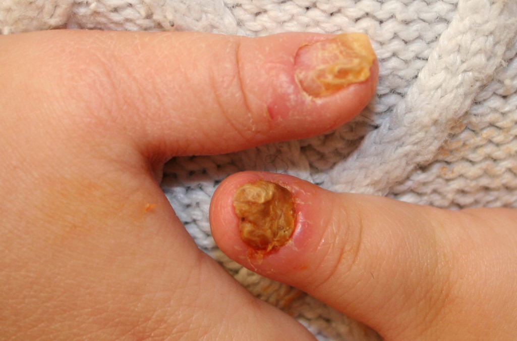 Herpetic whitlow and paronychia must be distinguished because the treatments are drastically different. Misdiagnosis and mistreatment may do more harm than good. Once herpetic whitlow is ruled out, one must determine whether the paronychia is acute or chronic and then treat it accordingly.5