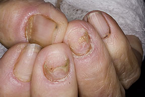 The patient’s history is crucial in determining the possibility of more serious underlying systemic conditions that may predispose the patient to paronychia. These underlying conditions may include diabetes, obesity, hyperhidrosis, immunologic defects, polyendocrinopathy, and drug-induced immunosuppression. Note the following: