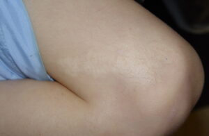 - Juvenile elastoma: Numerous nodules are present on the lower part of the trunk and the anterior aspects of the thighs.