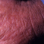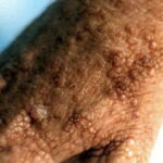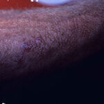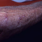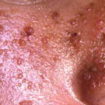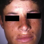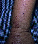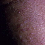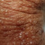 Colloid milium is a rare condition characterized by (1) the presence of multiple, dome-shaped, amber- or flesh-colored papules developing on light-exposed skin and (2) the observance of dermal colloid under light microscopy. The 4 variants are (1) an adult-onset type, (2) a nodular form (nodular colloid degeneration),1 (3) a juvenile form,2,3 and (4) a pigmented form, thought to be due to excess hydroquinone use for skin bleaching.4