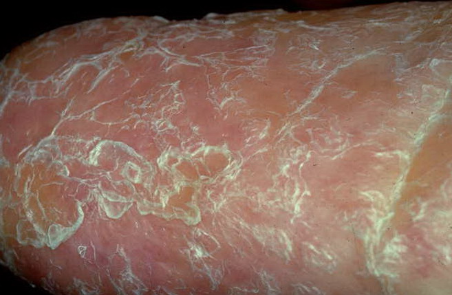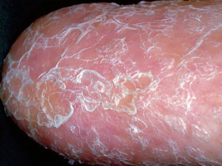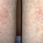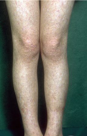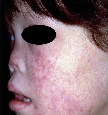 Skin biopsy specimens from the areas of reticulated pigmentation typically show nonspecific changes, including mild hyperkeratosis, epidermal atrophy, telangiectasia of the superficial blood vessels, and melanophages in the papillary dermis. Interface changes have also been reported, with mild basal layer vacuolization and a lymphocytic inflammatory infiltrate in the upper dermis.