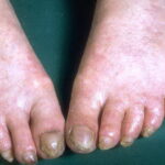 Dyskeratosis congenita (DKC), also known as Zinsser-Engman-Cole syndrome, is a rare, progressive bone marrow failure syndrome characterized by the triad of reticulated skin hyperpigmentation, nail dystrophy, and oral leukoplakia. Evidence exists for telomerase dysfunction, ribosome deficiency, and protein synthesis dysfunction in this disorder. Early mortality is often associated with bone marrow failure, infections, fatal pulmonary complications, or malignancy.