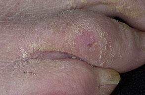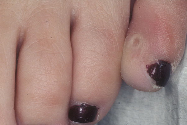 • Lesions occur in predictable pedal locations.