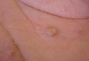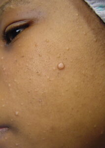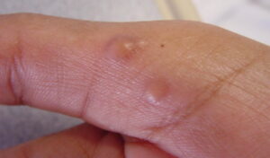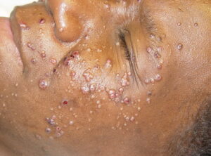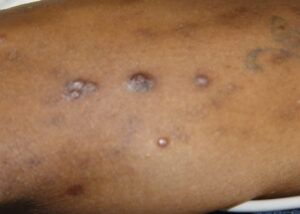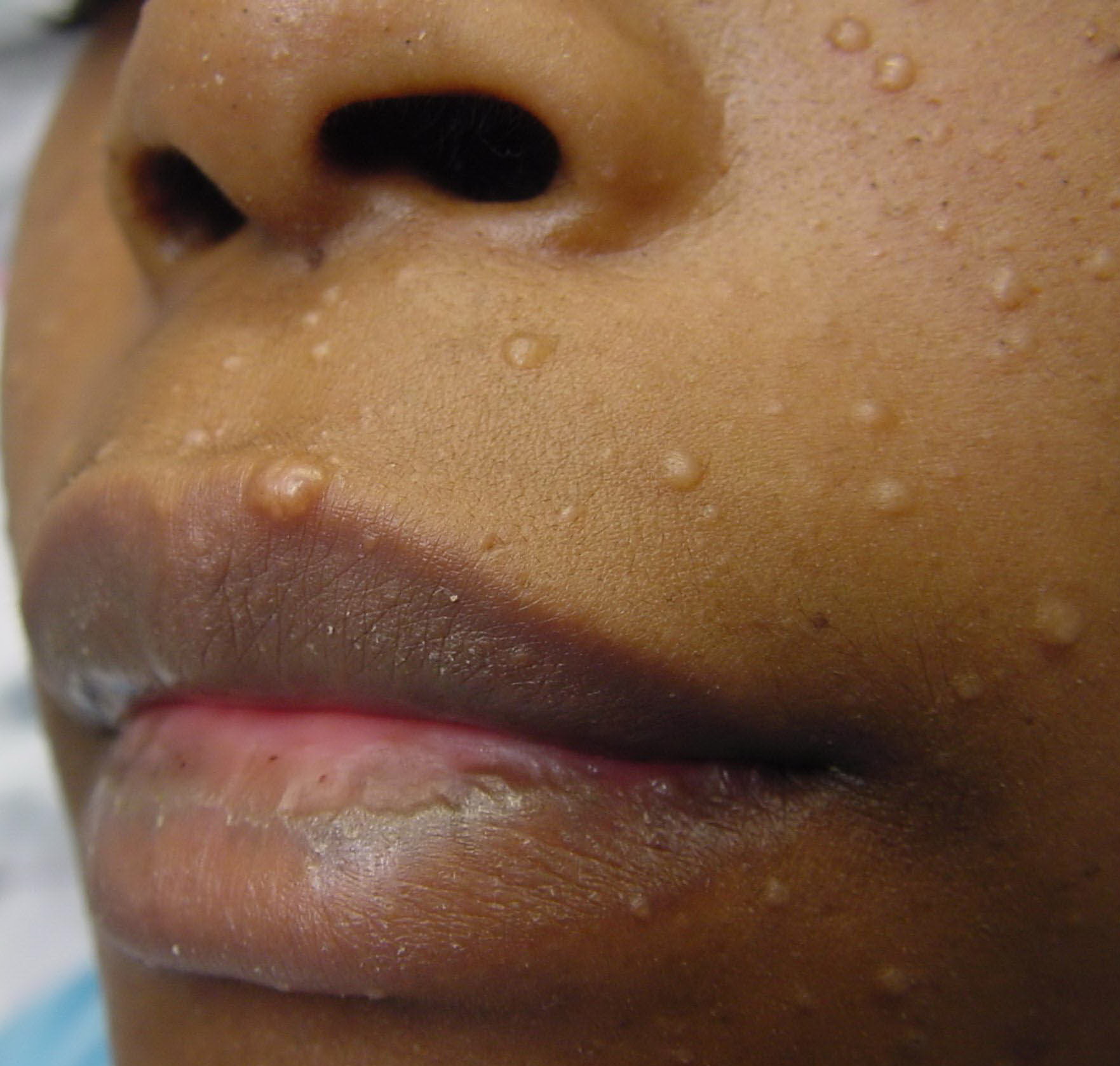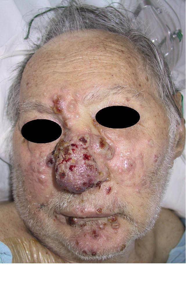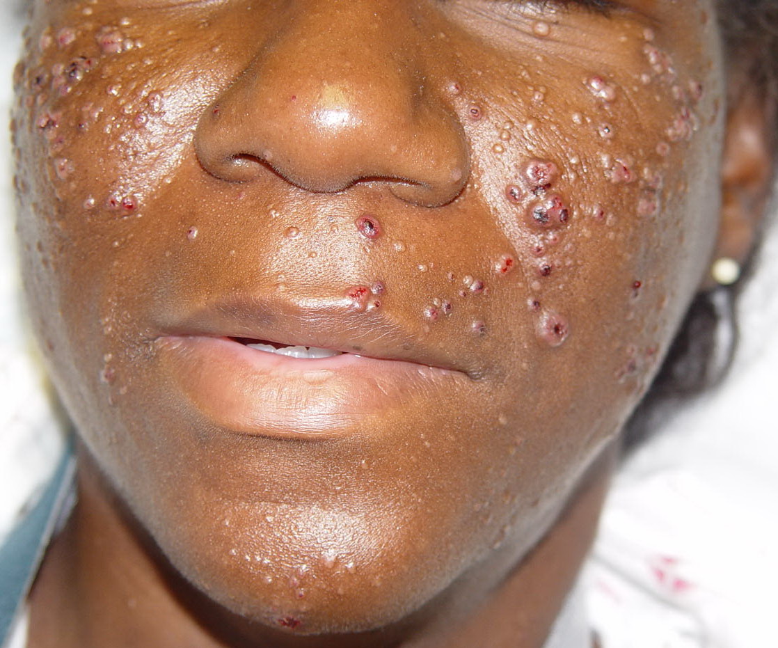 Cutaneous lesions are nonspecific and may be mistaken for a large variety of lesions related to other causes, including acne, syphilis, lipoma, tuberculosis, molluscum contagiosum, or basal cell carcinoma.