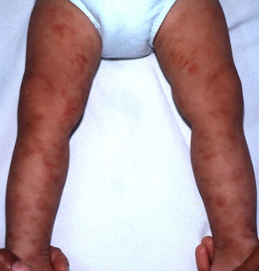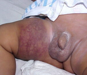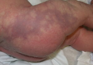 Cutis marmorata telangiectatica congenita =ترخم الجلد المتوسع الشعريات الخلقي